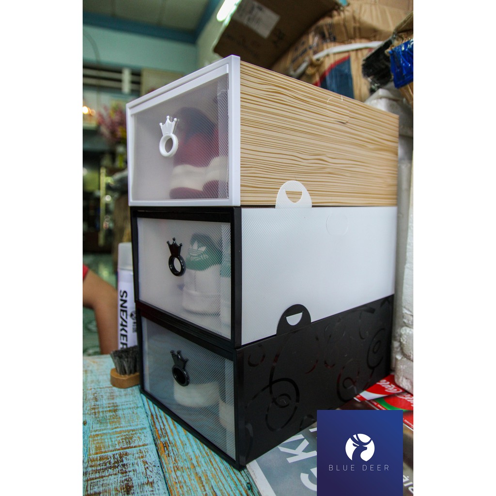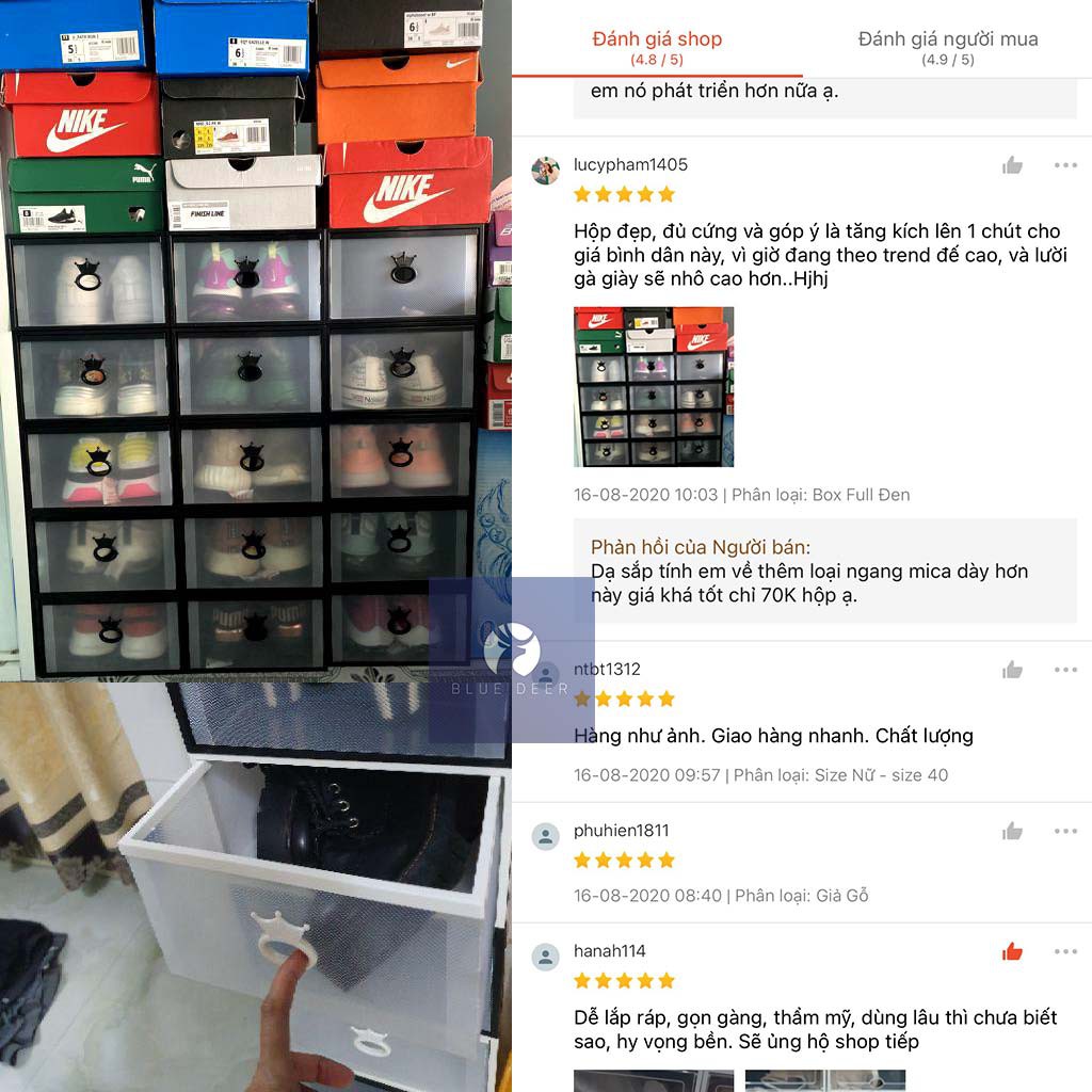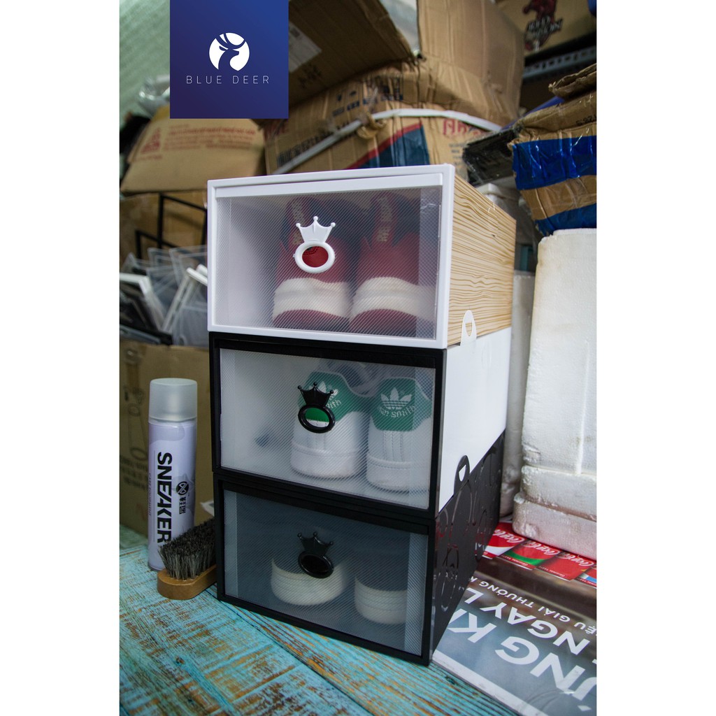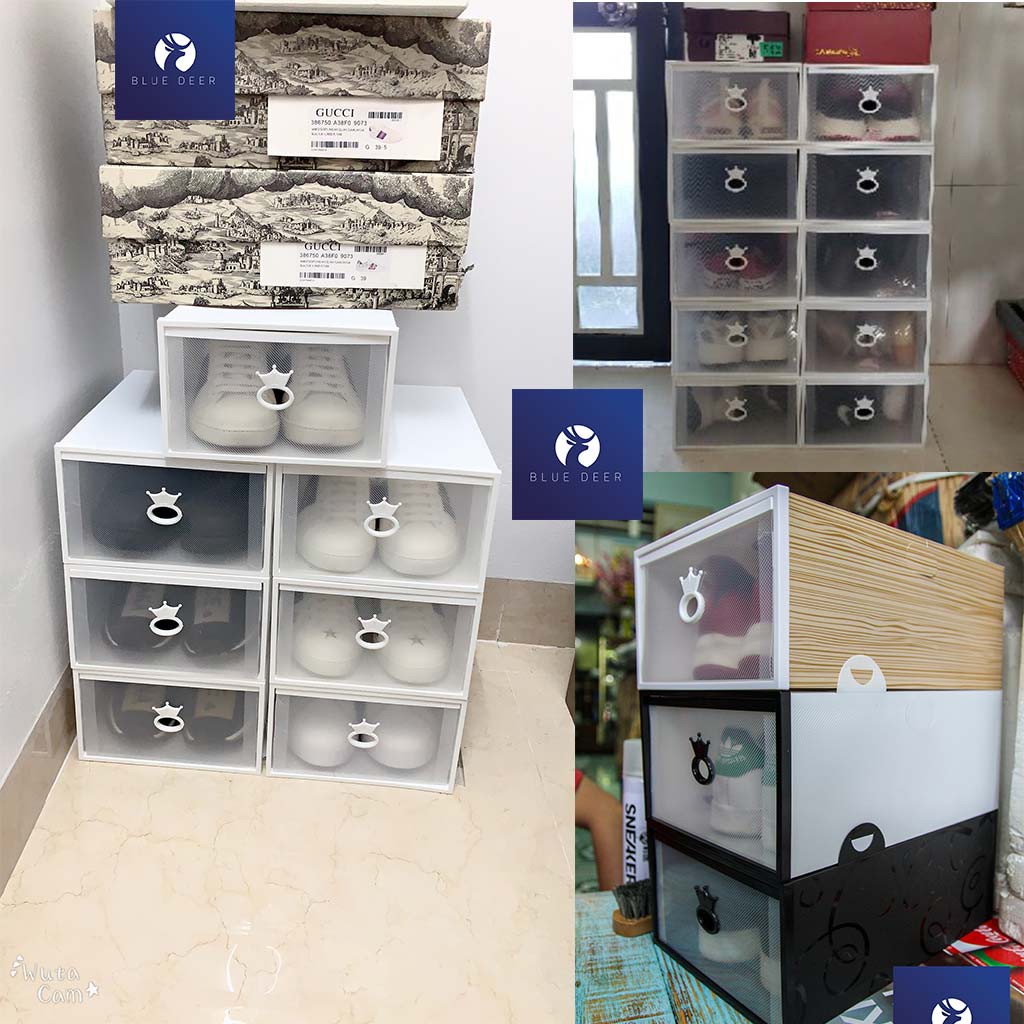 Hộp đựng giày ngăn kéo viền nhựa cứng trong suốt 2 lớp – Ảnh thật chịu nặng 5KG – Blue Deer