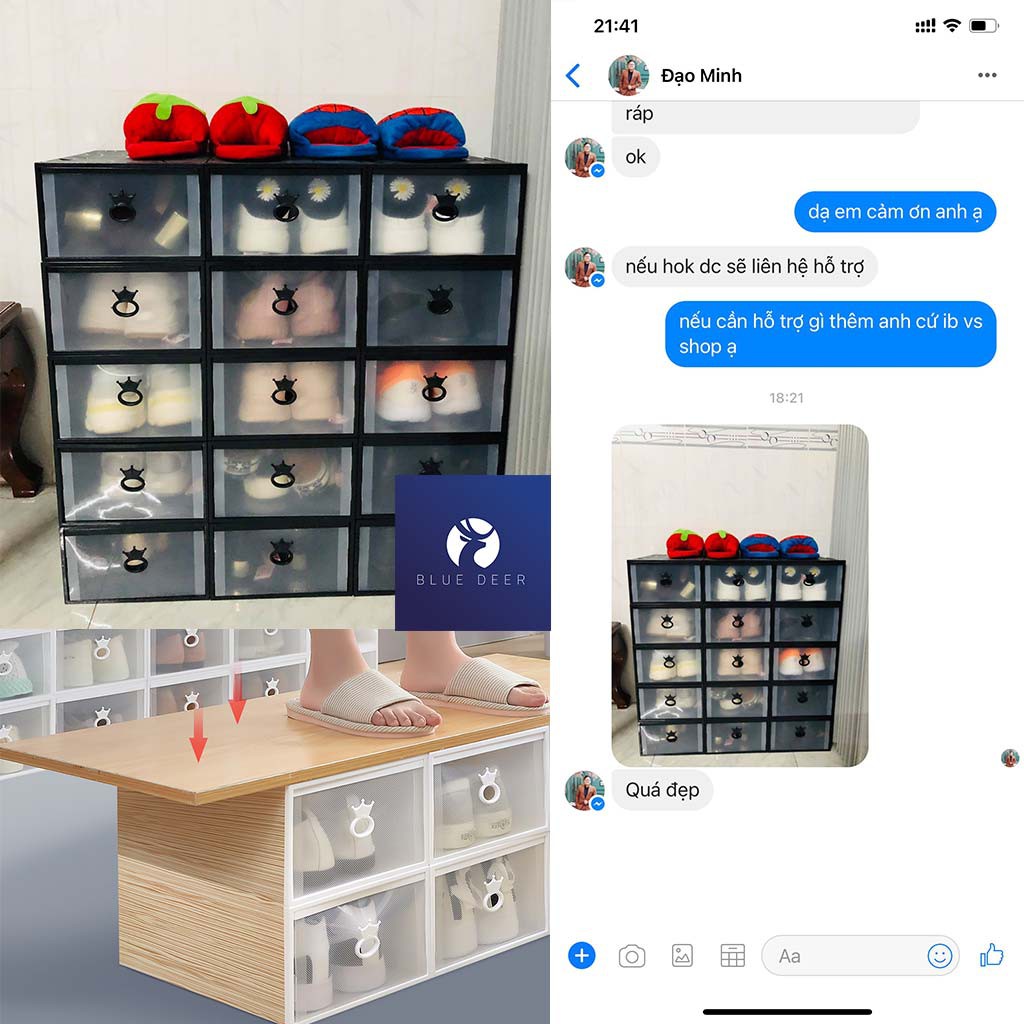Giới thiệu Hộp đựng giày ngăn kéo viền nhựa cứng trong suốt 2 lớp – Ảnh thật chịu nặng 5KG – Blue Deer