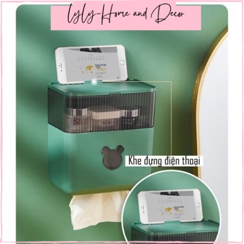 Hộp đựng giấy nhà vệ sinh, nhà tắm chống nước- có khe đựng điện thoại- Hộp đựng giấy gắn tường bằng nhựa