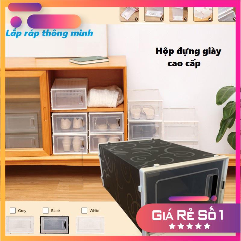 Hộp Đựng Giày Nhựa Cứng Lắp Ráp, Hộp Giày Tủ Giày Thông Minh Tiện Lợi - Tặng Gói Hút Ẩm
