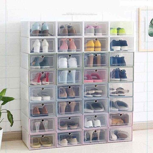 Hộp đựng giày nhựa cứng lắp ráp thông minh kèm quà tặng 4 móc dính tường khi mua 10 hộp