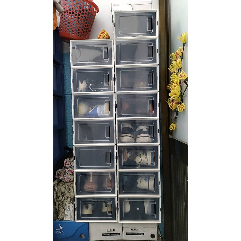 - Tiện ích bạn có thể xếp hộp nằm ngang hay đứng để đựng những đôi boot cao 25cm vẫn vừa