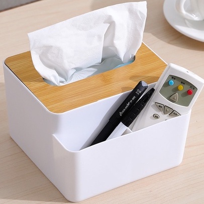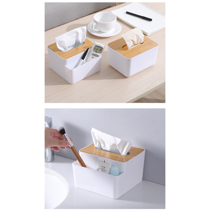 Hộp Đựng Giấy Rút Nắp Gỗ Có Ngăn Đựng Đồ