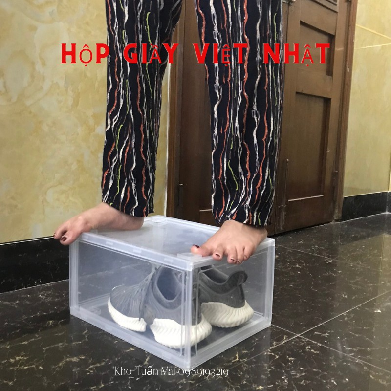 Hộp đựng giầy SALE nhựa cứng nắp cửa trong suốt thông minh Việt Nhật size lớn Sneaker Box