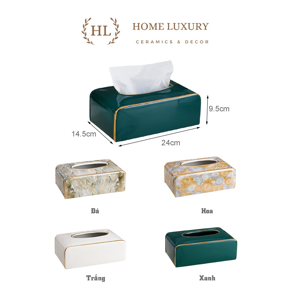 - Hộp giấy đặt bàn sứ là lựa chọn tối ưu trong - việc vừa đựng giấy đa năng vừa là sản phẩm trang trí tạo nét sang trọng cho phòng khách & bàn ăn nhà bạn.- Với chất men sứ thủ công, được nung với nhiệt độ cao đảm bảo màu sắc được như ảnh với đường vân mềm mại và uyển chuyển.