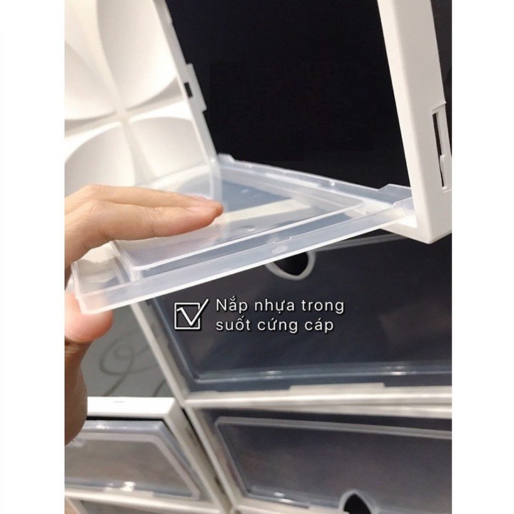 Giới thiệu Hộp Đựng Giày, Tủ Giày Dép Nắp Nhựa Cứng Trong Suốt, Chống Bám Bụi Size lớn Chịu Lực 6kg Tiện Lợi