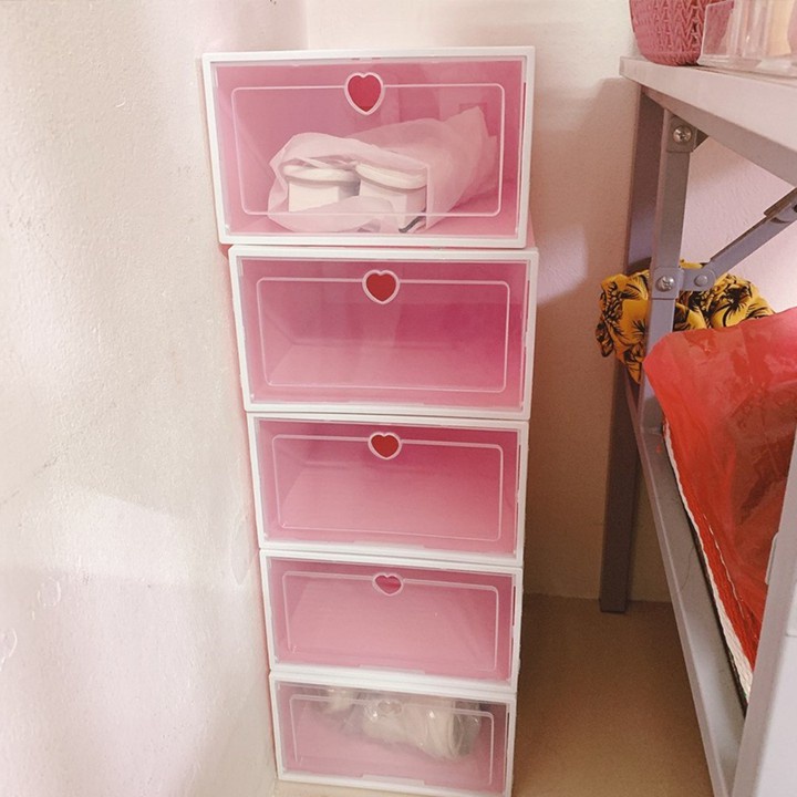 THÔNG SỐ SẢN PHẨM : Hộp Đựng Giày Nắp Trái Tim Nhựa CứngKích Thước : 33 x 23 x 13