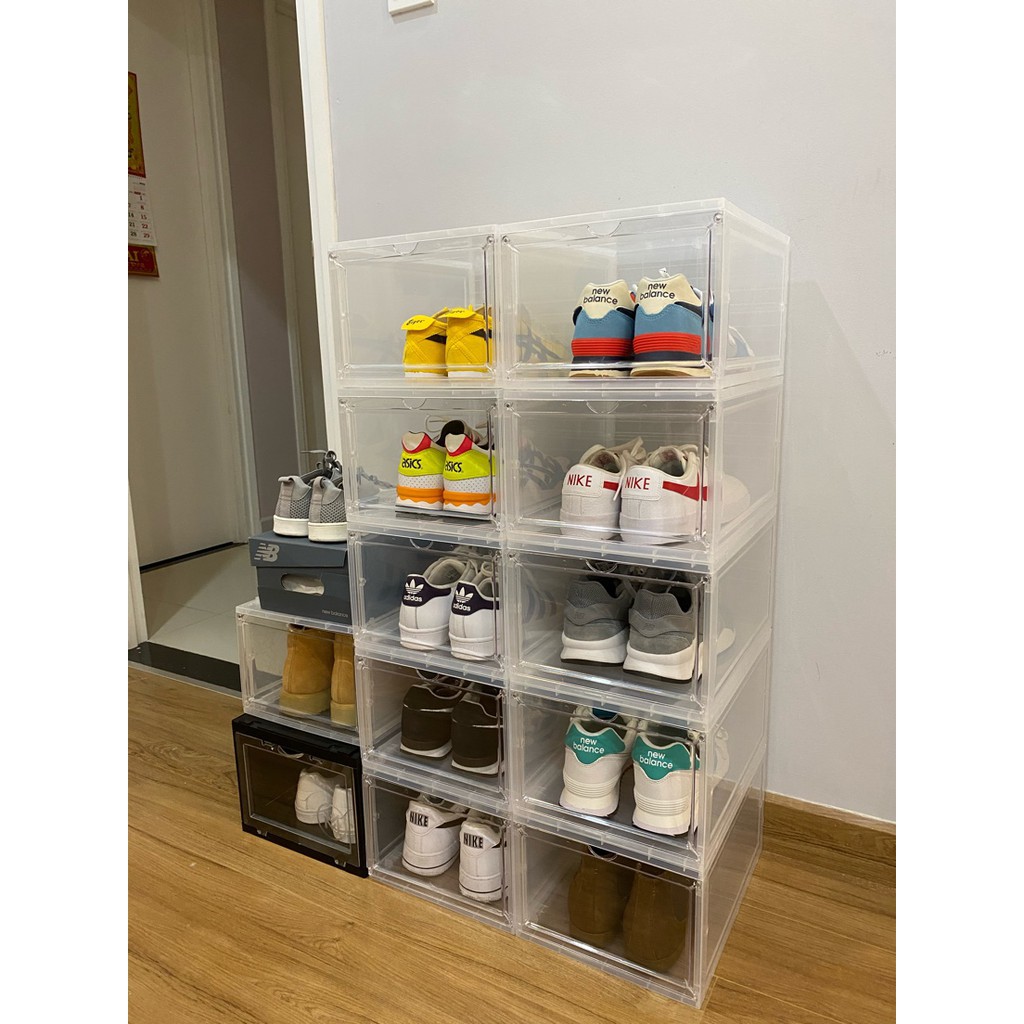 - Vì có độ trong suốt nên hộp đựng giày giúp bạn dễ dàng tìm kiếm đôi giày mình muốn tìm ngay lập tức khi cần