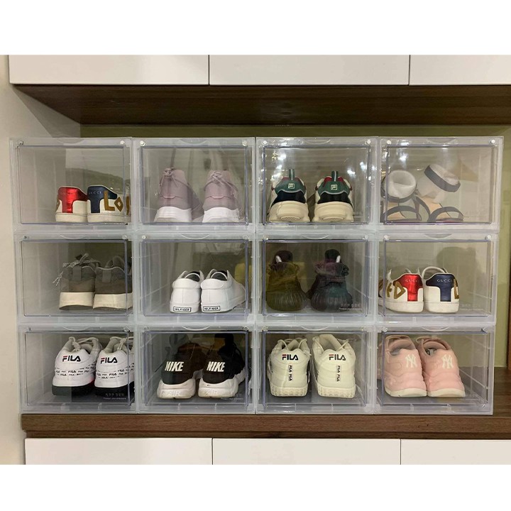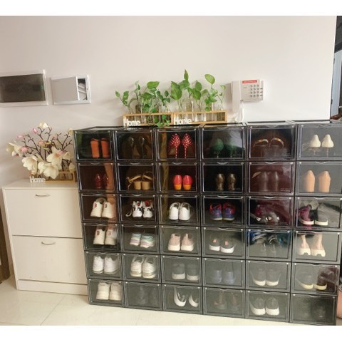 - Vì có độ trong suốt nên hộp đựng giày giúp bạn dễ dàng tìm kiếm đôi giày mình muốn tìm ngay lập tức khi cần
