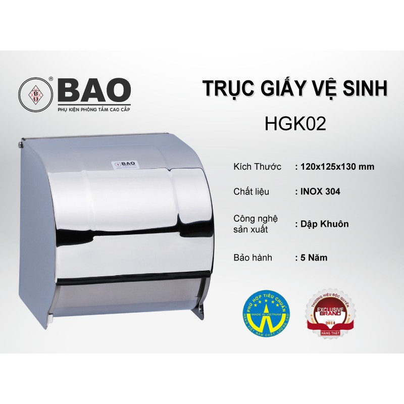 Hộp đựng giấy vệ sinh BAO Inox HGK02 dễ tháo lắp, sáng bóng, bảo hành 5 năm