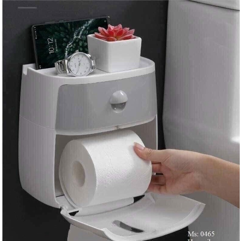 Hộp Đựng Giấy Vệ Sinh Cao Cấp 2 Tầng Đa Năng Thông Minh Chống Nước Tặng Kèm Miếng Dán Đa Năng