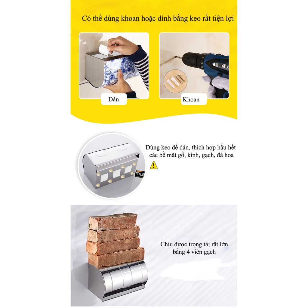 Hộp đựng giấy vệ sinh cao cấp chất liệu 100% INOX 304 chống thấm nước và hoen gỉ