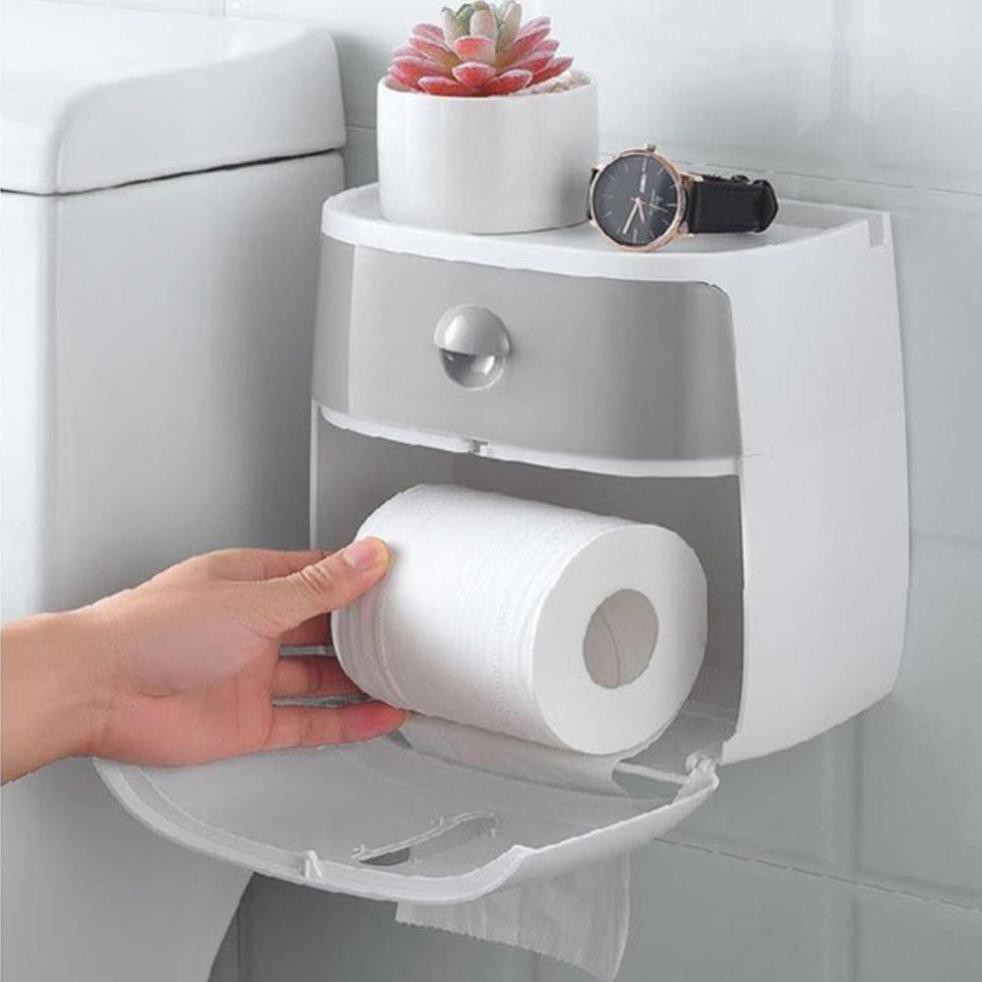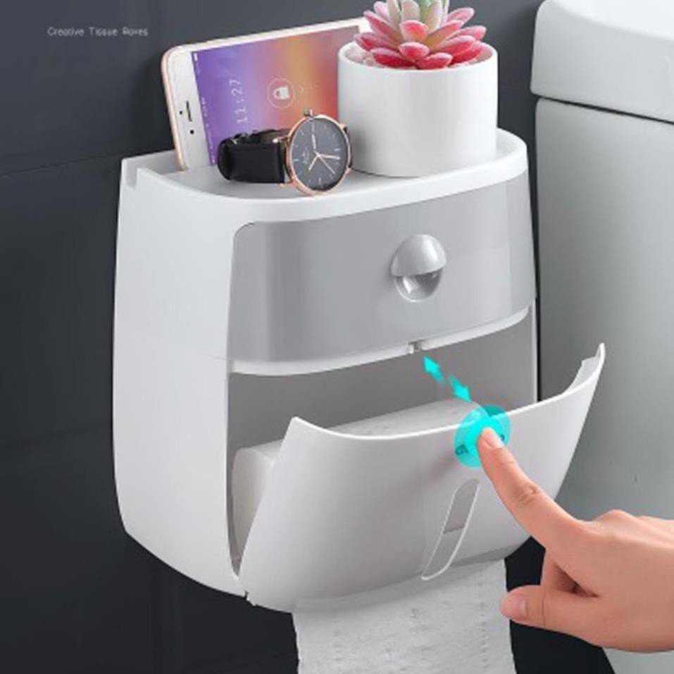 Hộp đựng giấy vệ sinh cao cấp ECOCO ⚡️ 2 tầng tiện dụng ⚡️ Sử dụng miếng dán cường lực không khoan tường