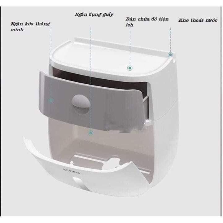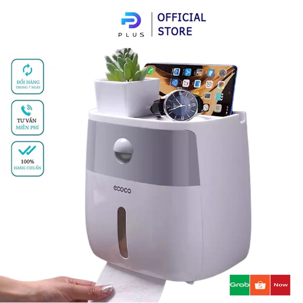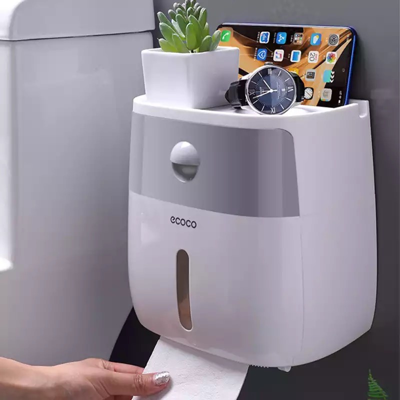 Hộp đựng giấy vệ sinh chống nước Ecoco 2 ngăn tiện lợi chuẩn hàng loại 1[Tặng kèm miếng dán]