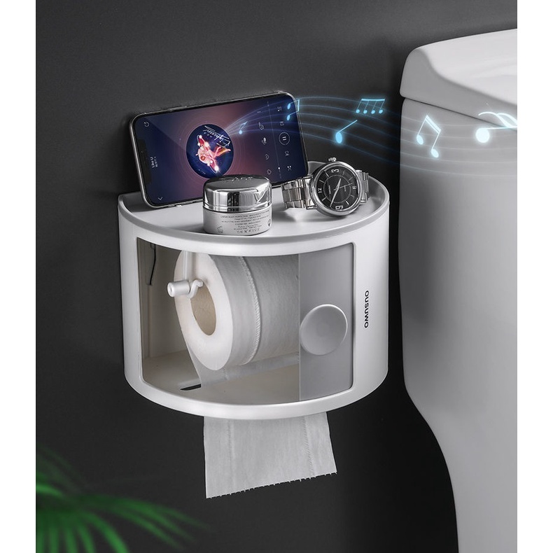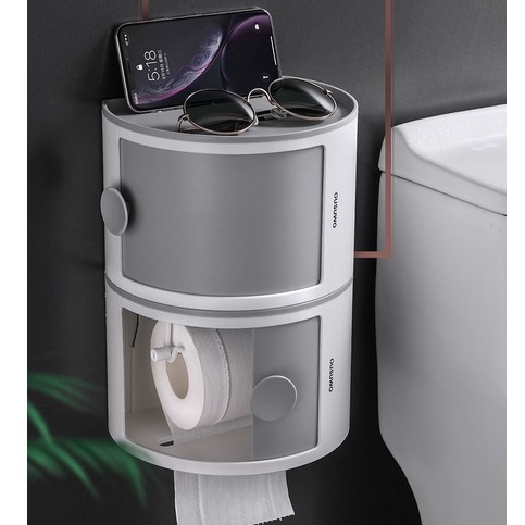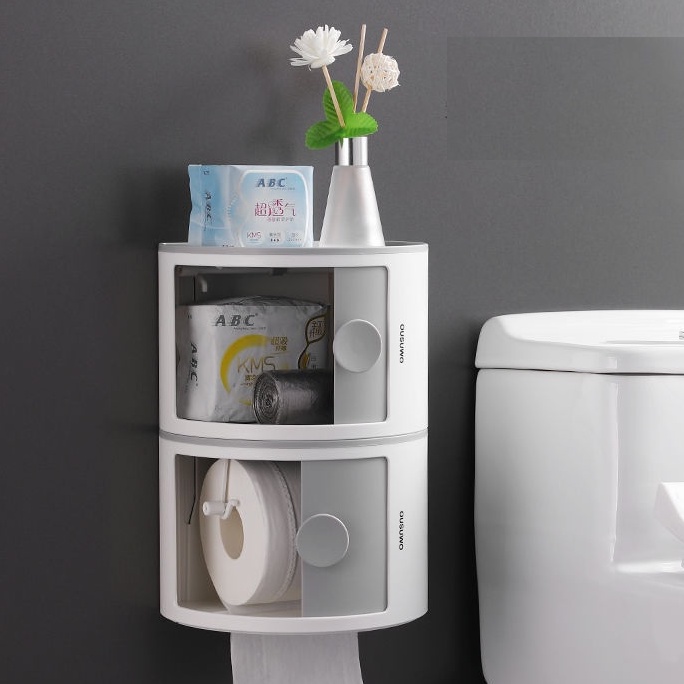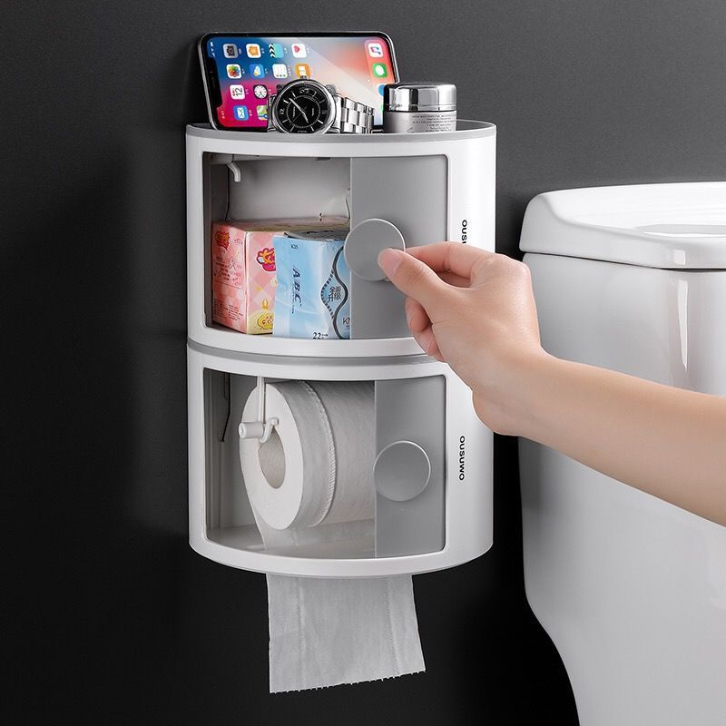 Hộp Đựng Giấy Vệ Sinh Cửa Trượt Hình Bán Nguyệt Dán Tường Xếp Chồng Nhiều Ngăn Tiện Lợi