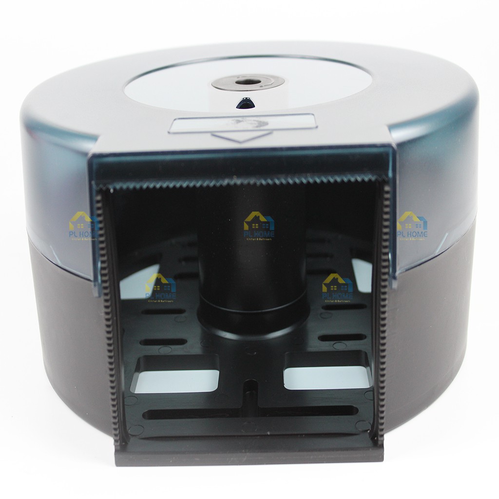 Ưu điểm: dễ sử dụng, dễ thay thế giấy, hộp đựng giấy kín nên không bị nước thấm vào giấy, hộp giất có khóa nên quản lý tốt trong iêu thị, trường học... các công trình công cộng. Hộp giấy có cửa sổ trong nên có thể nhìn thấy lượng giấy thường dùng còn lại trong hộp. Hộp giấy làm bằng nhựa bóng dễ vệ sinh, không lo gỉ sét