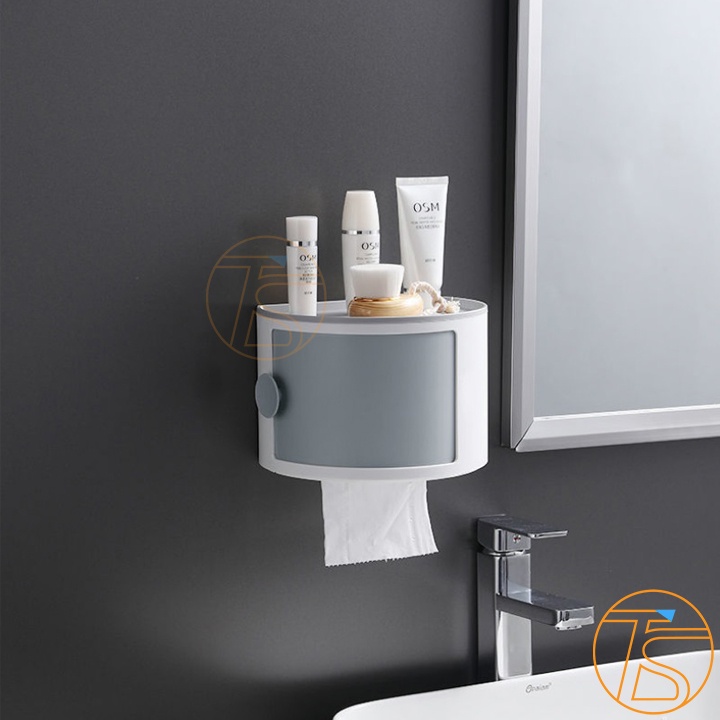 Giới thiệu Hộp Đựng Giấy Vệ Sinh Dán Tường Hình Cầu Có Nắp Kéo - Kệ Để Đồ Phòng Tắm Có Chống Nước 16.8x13.8cm