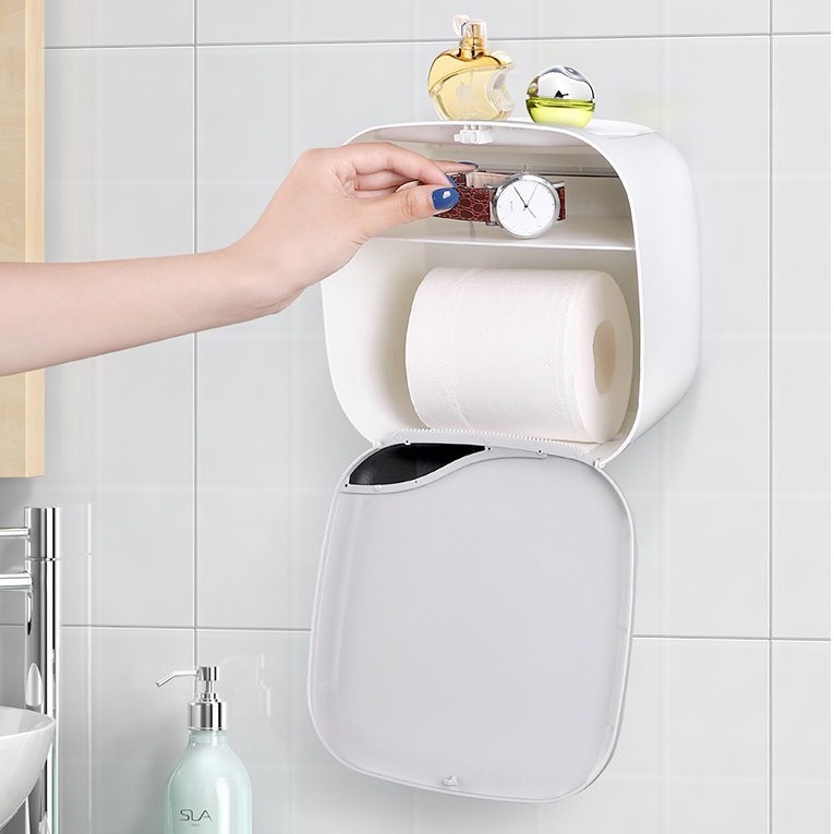 + Hộp đựng giấy vệ sinh kín có nắp giữ cho cuộn giấy luôn khô ráo, tránh nước hoặc bám bụi.