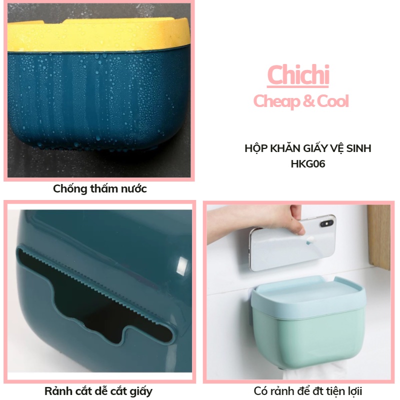 Giới thiệu Hộp đựng giấy vệ sinh dán tường nhà tắm TẶNG KÈM miếng dán siêu dính kệ để đồ bằng nhựa chống nước ChiChi HKG06