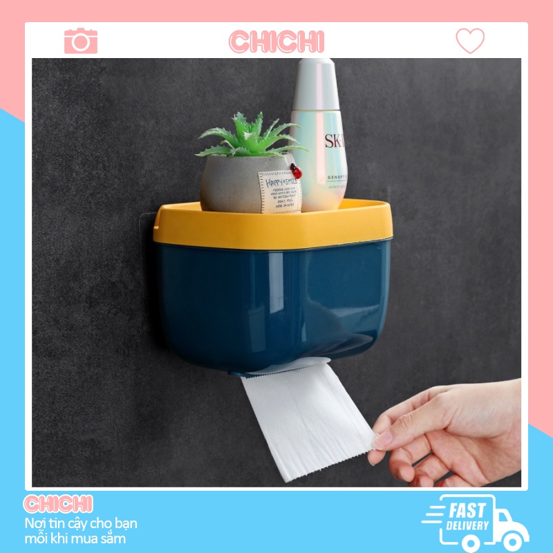 Hộp đựng giấy vệ sinh dán tường nhà tắm TẶNG KÈM miếng dán siêu dính kệ để đồ bằng nhựa chống nước ChiChi HKG06