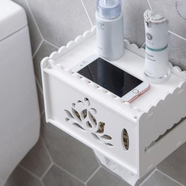Hộp đựng giấy vệ sinh dán tường hoa văn hiện đại, có kệ đựng vật dụng tiện lợi