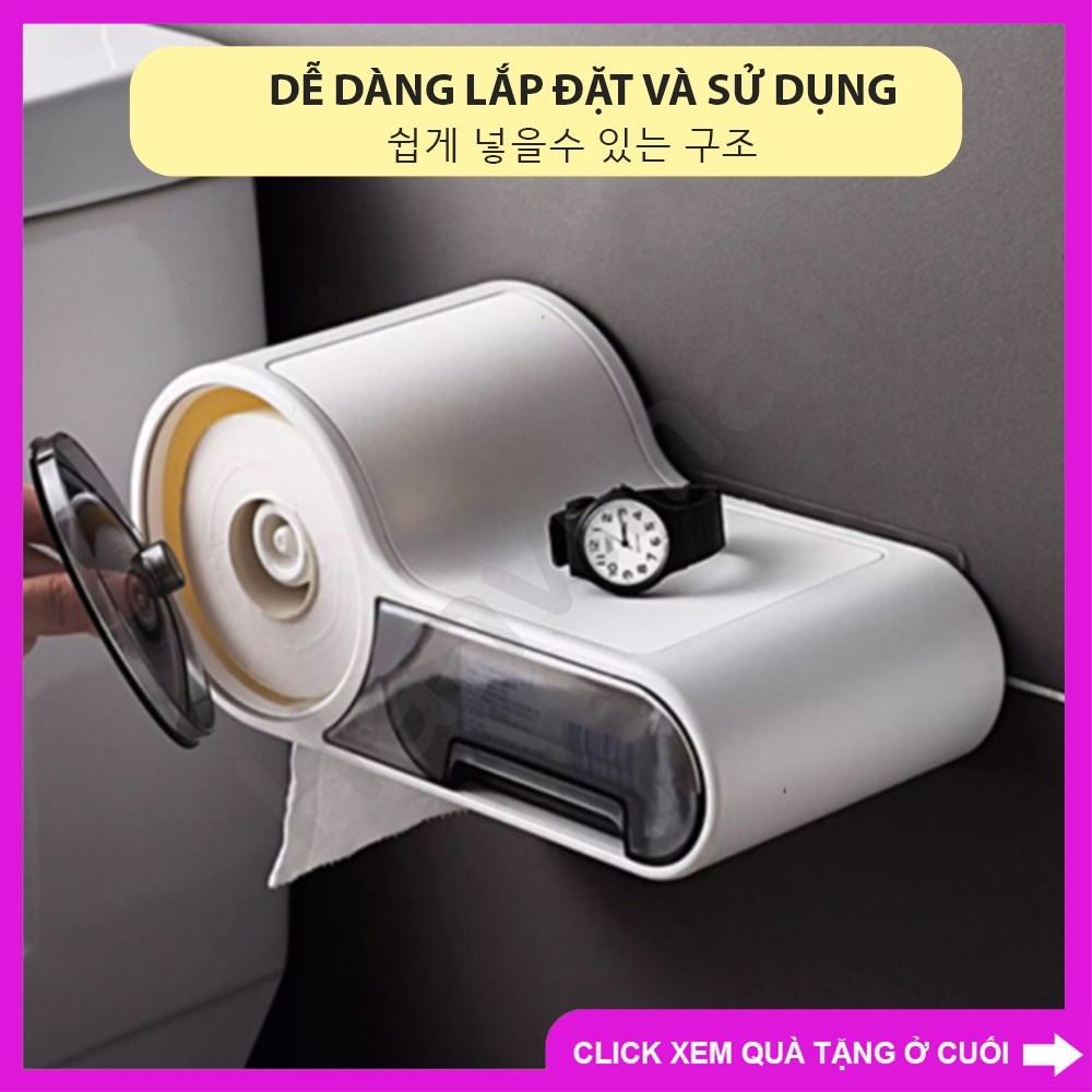 Hộp Đựng Giấy Vệ Sinh Dán Tường Tiện Lợi - Thiết Bị Nhà Tắm Chống Nước 2 Ngăn (Tặng Kèm Miếng Dán)