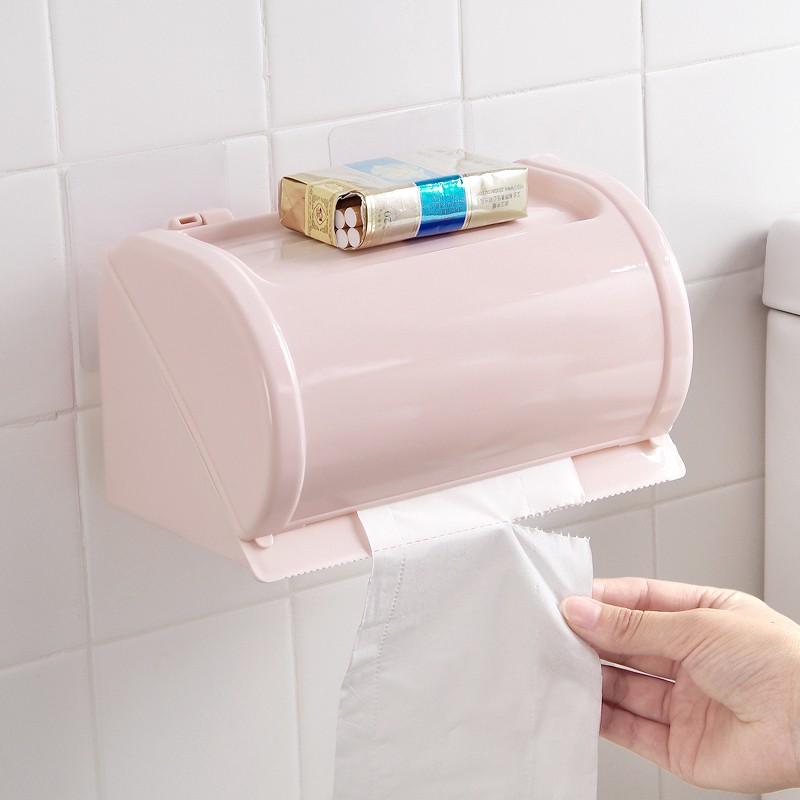 Hộp Đựng Giấy Vệ Sinh Dán Tường Có Khay Để Đồ Tiện Dụng Trong Phòng Tắm
