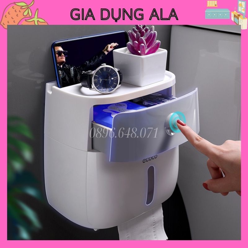 - Hộp giấy vệ sinh dán tường có ngăn kéo phụ tiện lợi. Bề mặt tủ rộng có thể để được phụ kiện. Ngăn riêng để Điện thoại hoặc Máy tính