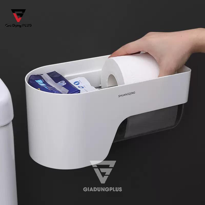 Hộp Đựng Giấy Vệ Sinh Dán Tường Cuộn Lớn | Cuộn Giấy Vuông & Tròn | Nhựa ABS Với Ngăn Đựng Đồ Đa Năng