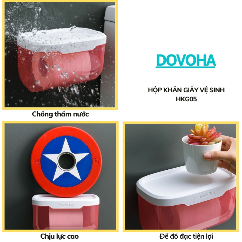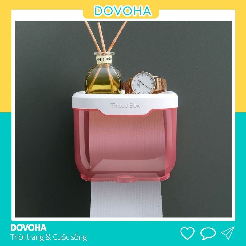 Hộp đựng giấy vệ sinh DOVOHA TẶNG KÈM MIẾNG DÁN sử dụng cho phòng tắm có kệ để đồ chống nước HKG05