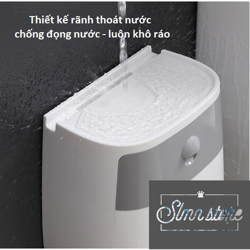 - Sản phẩm được thiết kế ngăn nước vào bên trong nhằm bảo vệ cuộn giấy luôn khô thoáng, thích hợp đặt trong phòng tắm, đồng thời có thể sử dụng trong nhà bếp, phòng khách…