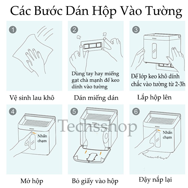 Lưu khi dán: Phải vệ sinh sạch sẽ và khô bề mặt dán. Khi dán miếng dán phải dùng tay hay miếng gạt chà mạnh để miếng dán dính đều và không còn bọt khí trong miếng dán. Sau khi dán phải để miếng dán cố định từ 2-3 giờ để lớp keo dính chắc vào tường. Sau đó lắp hộp vào và để giấy vào.(Bề mặt tốt là gạch men, đối tường gạch nên làm sạch lớp tường, các loại tường nấm móc, sơn củ hãy vệ sinh kỹ trước khi dán.
