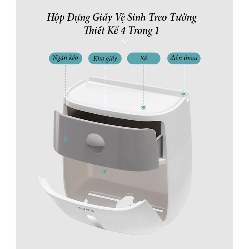 Hộp đựng giấy vệ sinh ecoco, hai tầng, ngăn chứa lớn, có khay để điện thoại⭐ THÔNG TIN CHI TIẾT