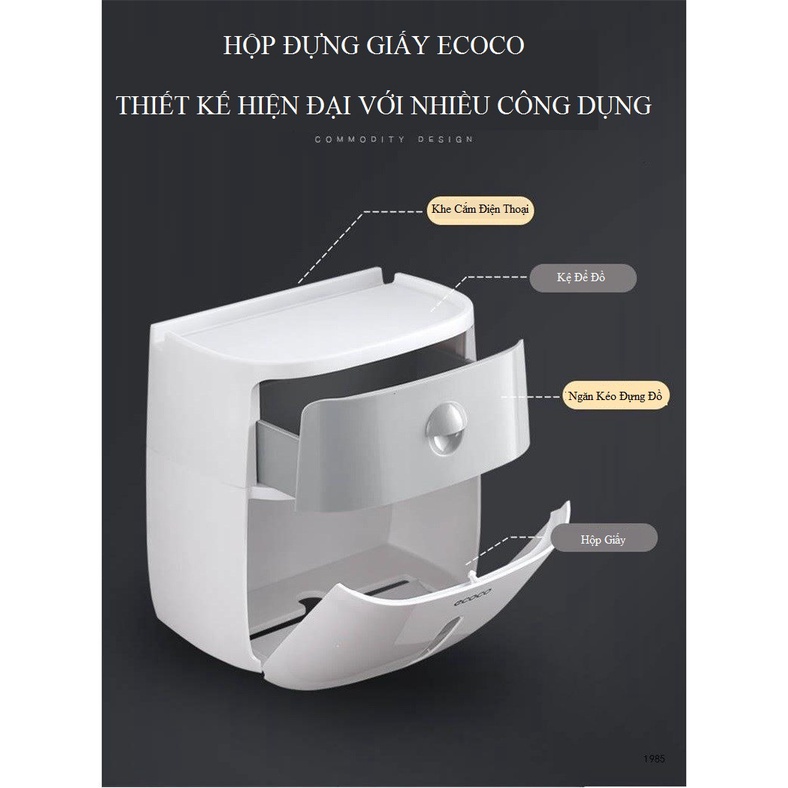 Hộp Đựng Giấy Vệ Sinh ECOCO , Thiết Bị Nhà Tắm Chống Nước 2 Ngăn Tiện Lợi Tặng ( Kèm Miếng Dán)