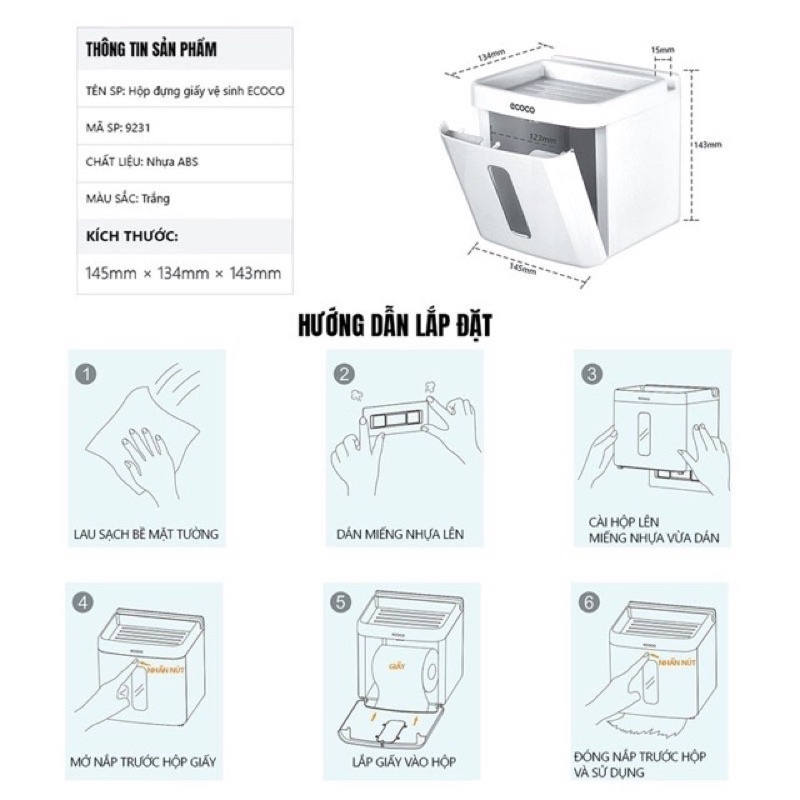 Hộp đựng giấy vệ sinh ECOCO 🧻🧻🧻👉🏻 Thương hiệu: Ecoco