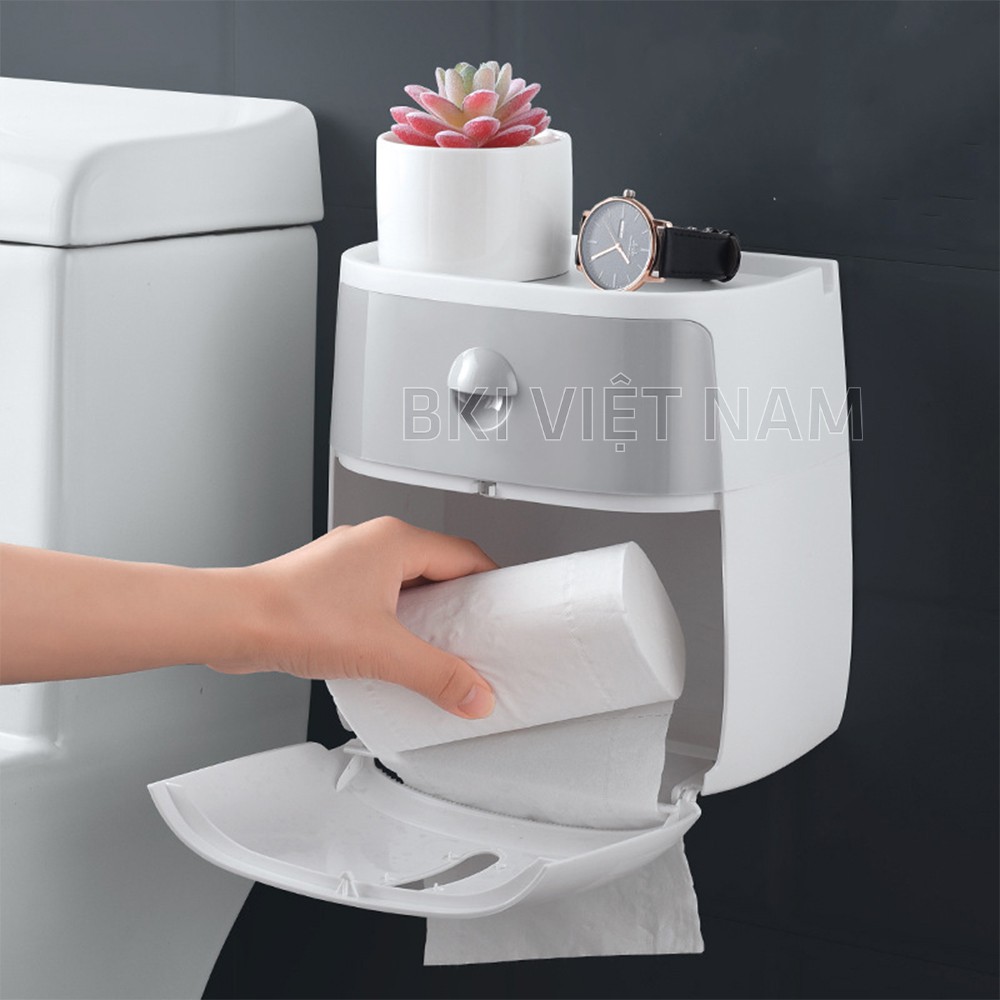 Hộp đựng Giấy Vệ Sinh ECOCO Cao cấp 2 tầng đa năng, sang trọng, tiện dụng, có ngăn kéo để đồ