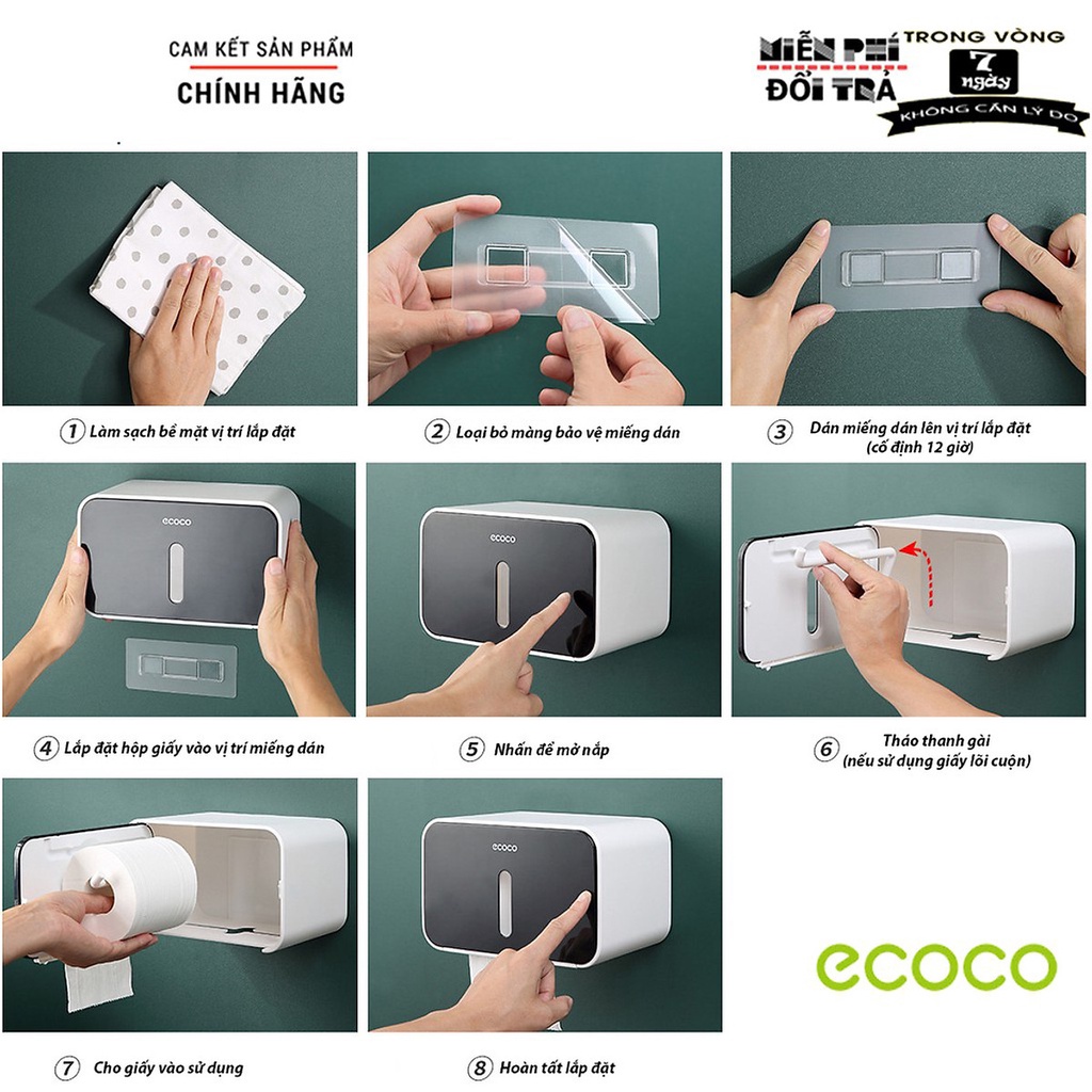 Giới thiệu Hộp Đựng Giấy Vệ Sinh ECOCO E1903 Dán Tường, Hộp Đựng Khăn Giấy Chống Nước Cao Cấp - Tặng Kèm miếng dán
