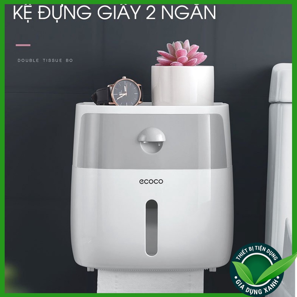 Hộp đựng giấy vệ sinh Ecoco cao cấp dán tường 2 tầng Tiện Dụng-Hàng loại 1 chắc chắn Tặng kèm miếng dán siêu dính