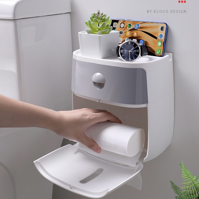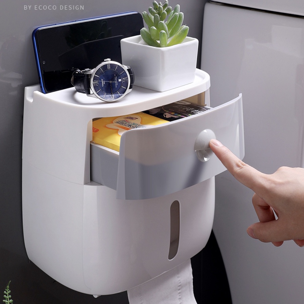 Hộp Đựng Giấy Vệ Sinh ECOCO Cao Cấp 2 Tầng - Đa Năng, Sang Trọng, Dán Tường Không Cần Khoan