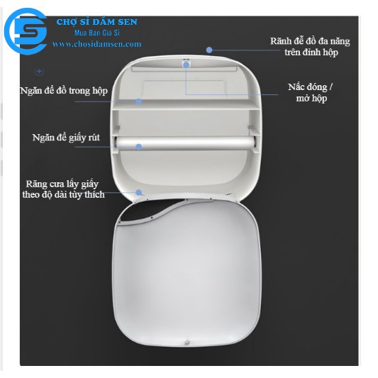 - Hộp đựng giấy vệ sinh kín có nắp giữ cho cuộn giấy luôn khô ráo, tránh nước hoặc bám bụi.