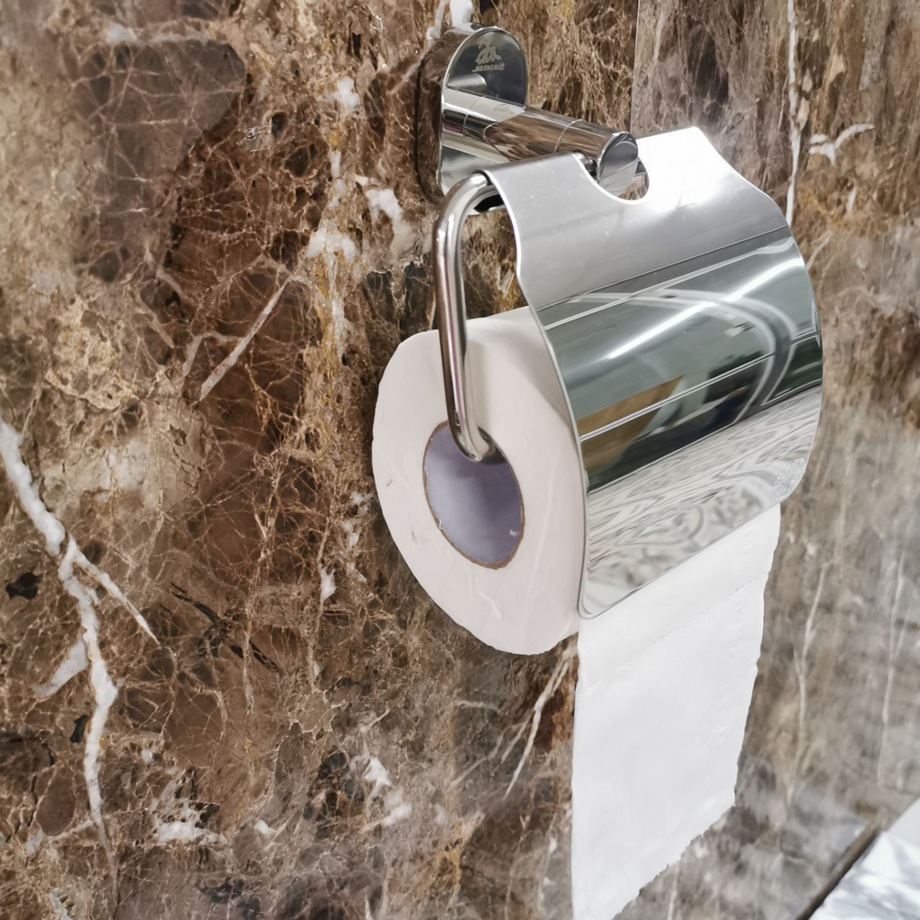 Khay để giấy vệ sinh inox 304 Moonoah bổ sung thêm nắp che inox bảo vệ giấy không bị ướt và tăng cường tính thẩm mỹ cho sản phẩm.