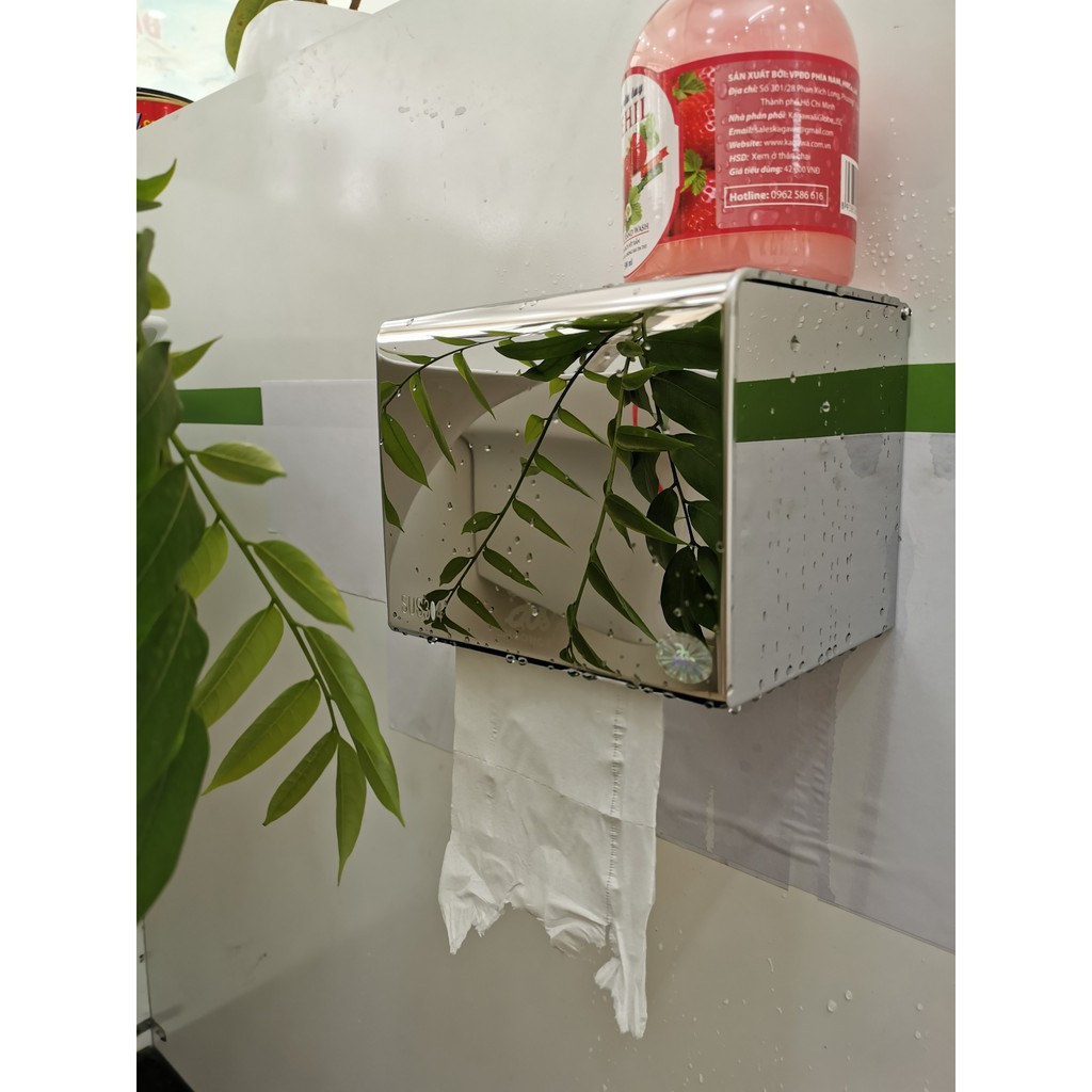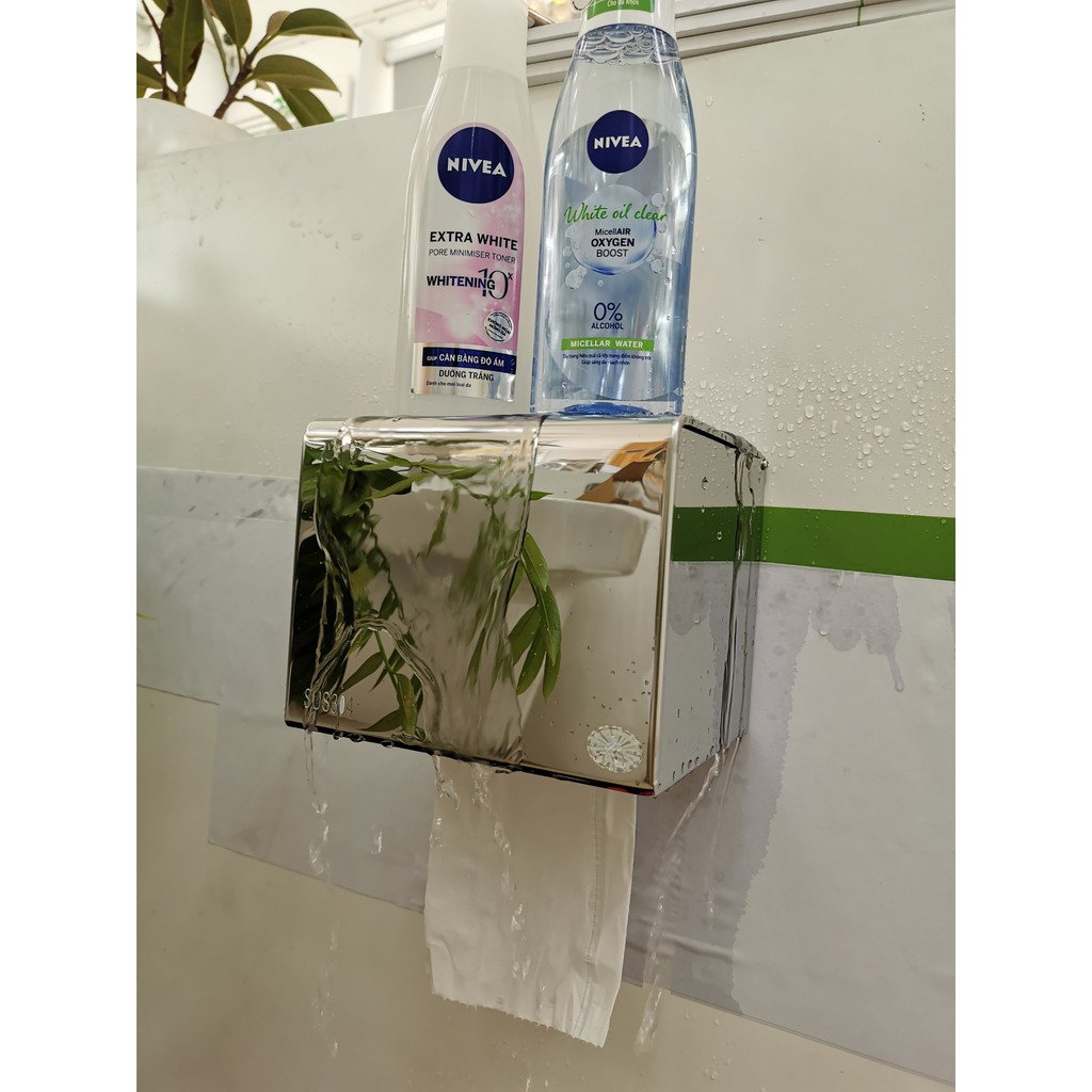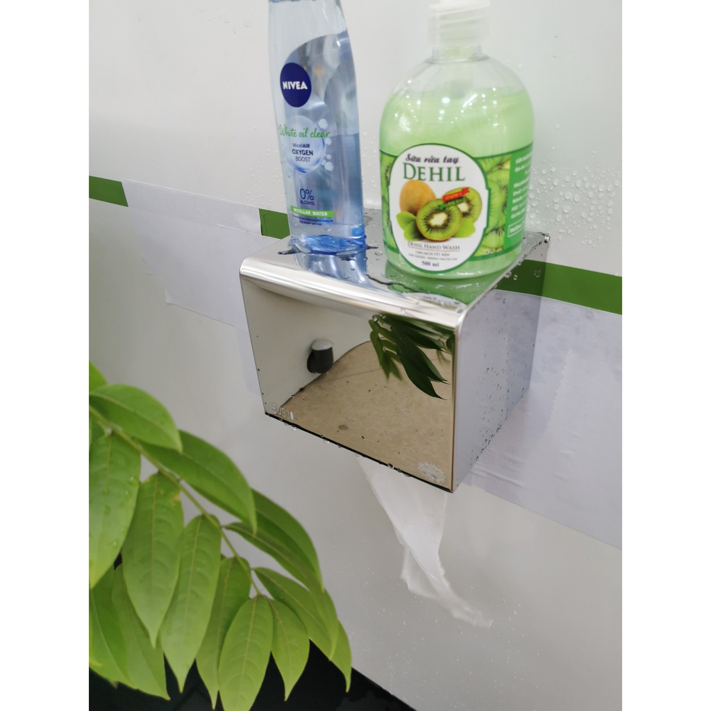 Sản phẩm hộp giấy bóng gương thiết kế mái che giúp giấy vệ sinh không bị ẩm ướt, mặt trên chúng ta có thể sử dụng để điện thoại, dầu gội, đồng hồ vô cùng tiện lợi và sang trọng. Với thiết kế thông minh sẽ làm bừng sáng không gian phòng tắm nhà bạn.