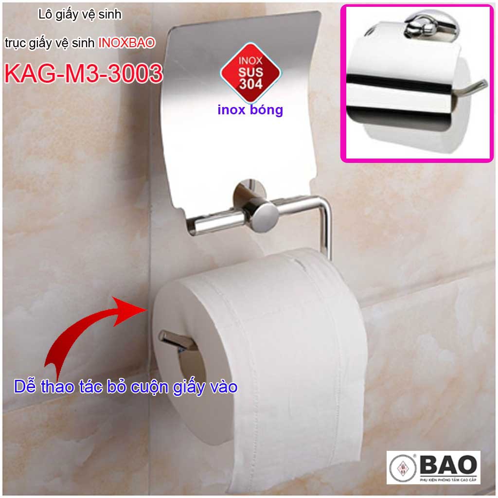 Hộp đựng giấy vệ sinh Inox Bảo KAG-M3-3003, Móc giấy toilet SUS304 inox dập khuôn cao cấp thiết kế tuyệt đẹp