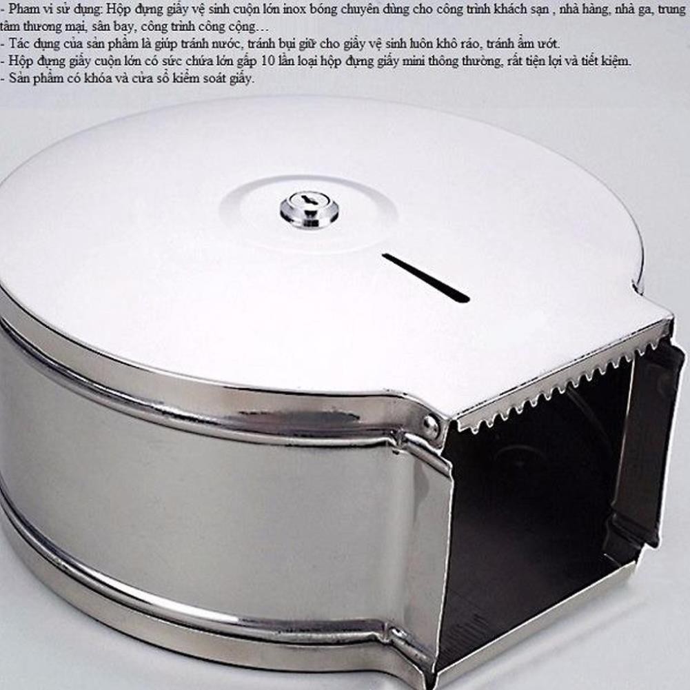 Hộp đựng giấy vệ sinh cuộn lớn là phụ kiện cao cấp dành cho khách sạn nhà hàng và gia đình được được sản xuất từ chất liệu inox chống rỉ, siêu bền, an toàn cao.