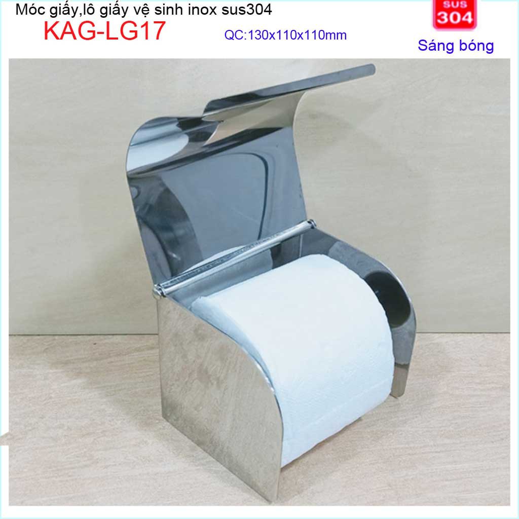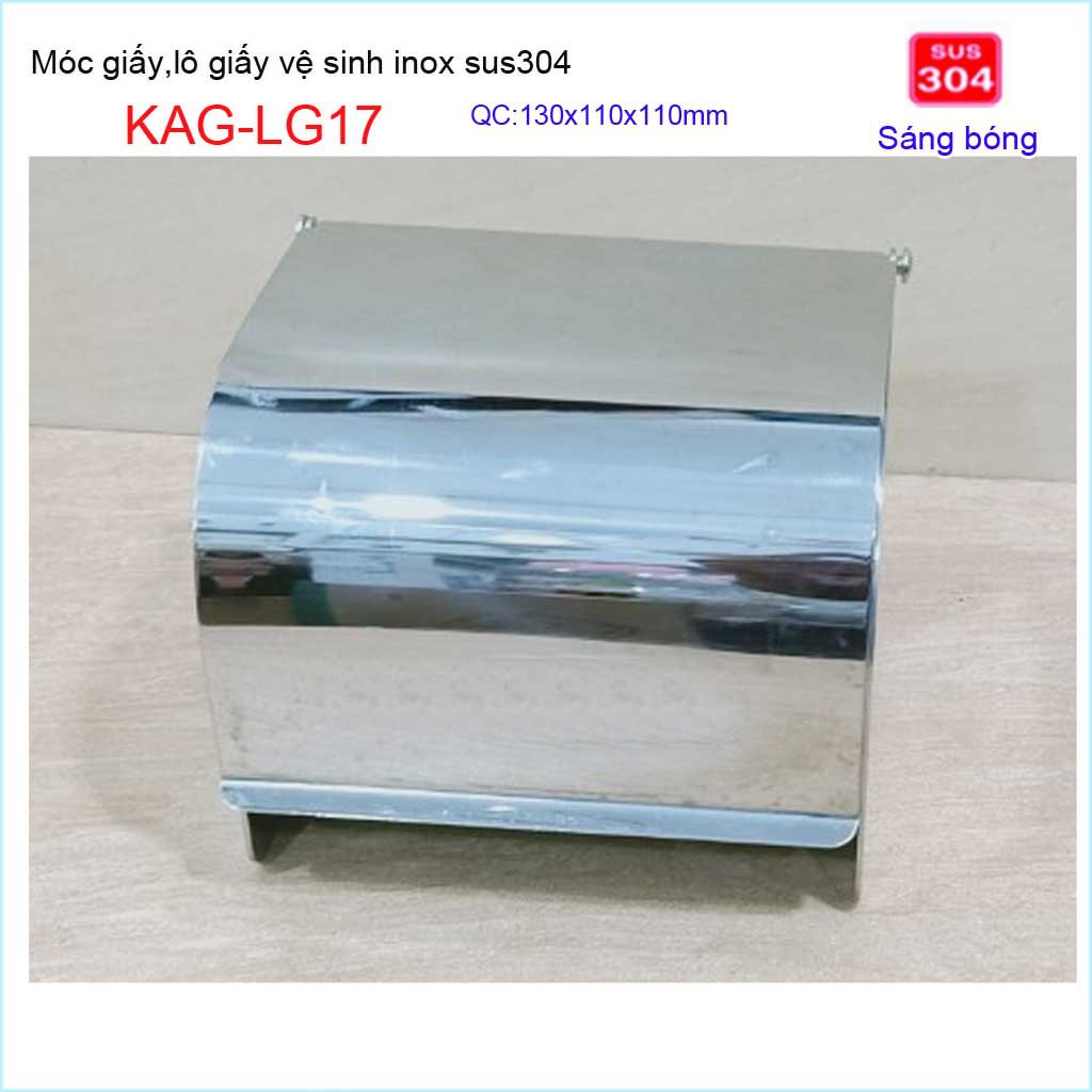 Hộp đựng giấy vệ sinh KAG-LG17 nắp kín chống ướt giấy , Hộp giấy inox SUS304 bóng dày đẹp