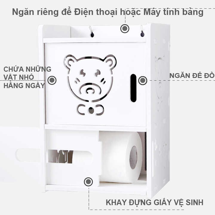 Sản phẩm được thiết kế ngăn nước vào bên trong nhằm bảo vệ cuộn giấy luôn khô thoáng, thích hợp đặt trong phòng tắm, đồng thời có thể sử dụng trong nhà bếp, phòng khách...