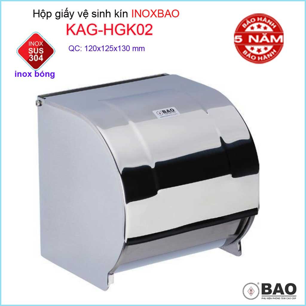 Hộp đựng giấy vệ sinh kín nước Inox Bảo KAG-HGK02, Móc giấy toilet SUS304 inox dập khuôn cao cấp thiết kế tuyệt đẹpKích thước dài 120x rộng 125 x cao 130mm