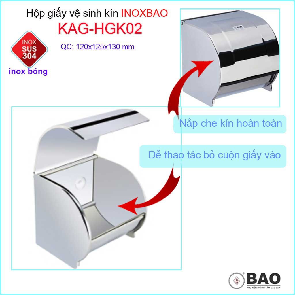 Hộp đựng giấy vệ sinh Inox Bảo KAG-HGK02 thiết kế tinh tế, sang trọng, mẫu mã sắc sảo không thua hàng nhập châu Âu