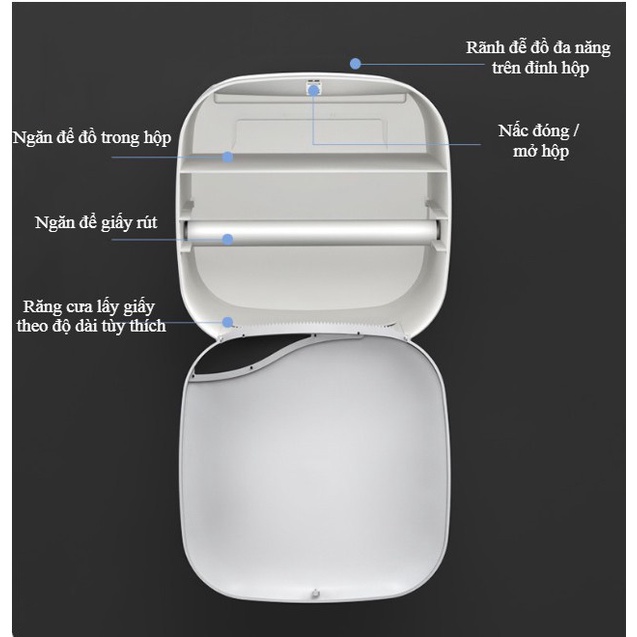 ✔️Hộp dễ dàng thay đổi vị trí và giúp cho giấy wc luôn khô ráo.