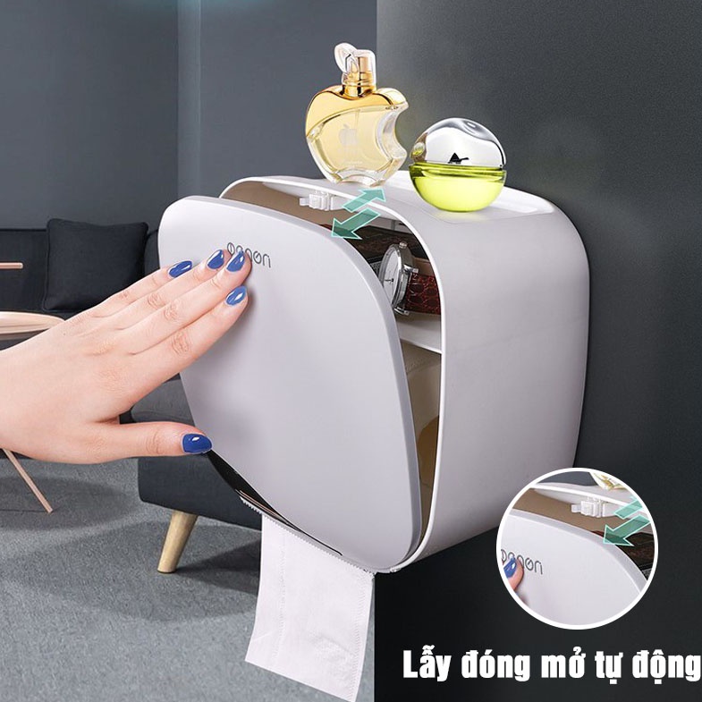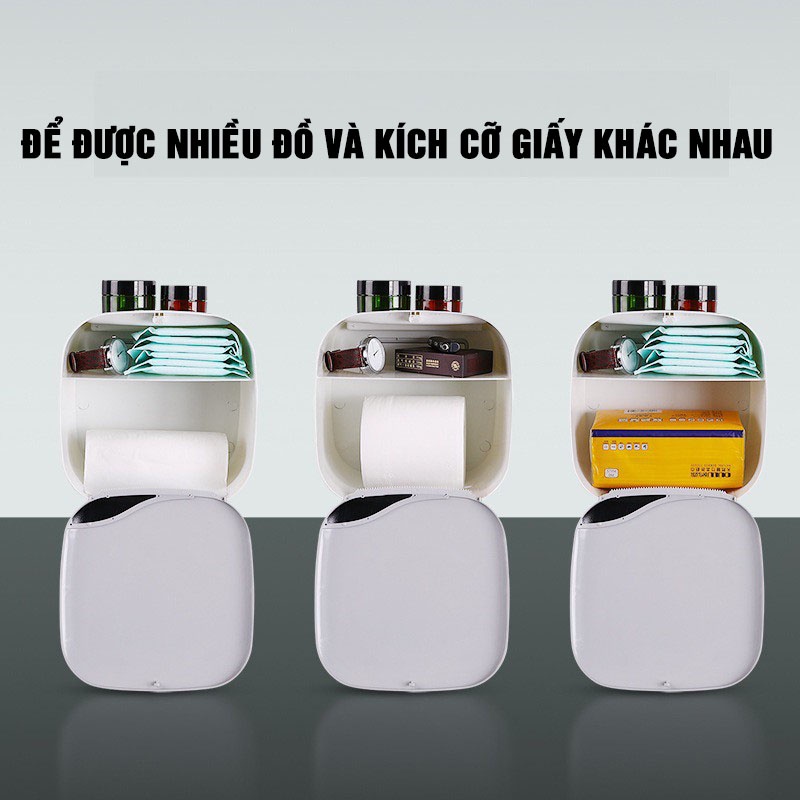 Hộp Đựng Giấy Vệ Sinh,sử dụng miếng dán siêu chắc Chống Nước 2 Ngăn Tiện Lợi
